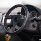 The interior of the car still continues the USDM tribute with USDM odometer dash and hazard panel, but not seen here in detail. What can be seen here is the Renown steering wheel in leather with red stitching and a pair of BRIDE bucket seats.